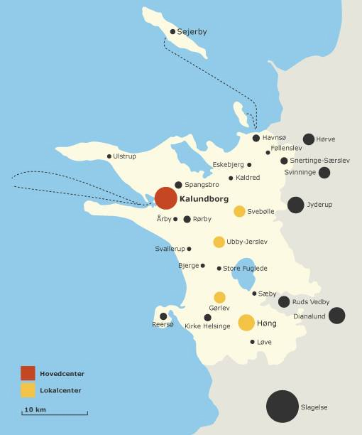 3.1.1 Bymønsteret for Kalundborg kommune beskriver den grundlæggende rollefordeling mellem kommunens byer og landsbyer.