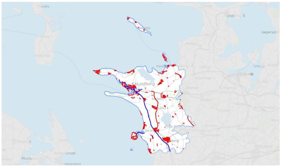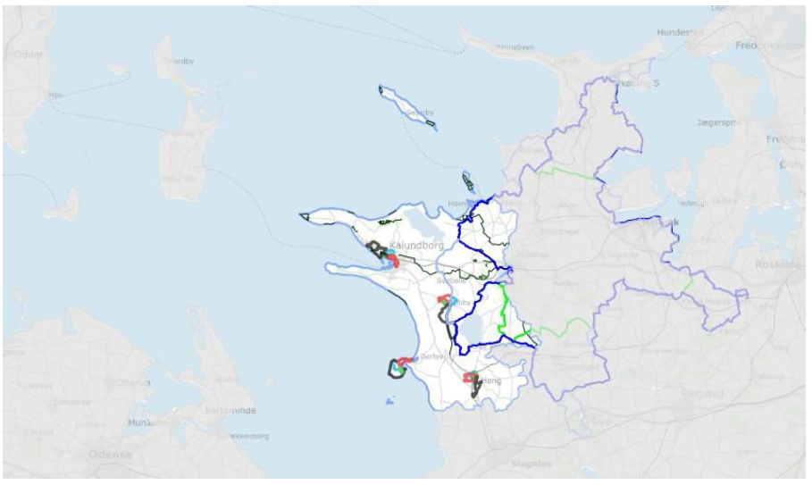 Kort 4.9.c Markerede ruter i Kalundborg kommune
