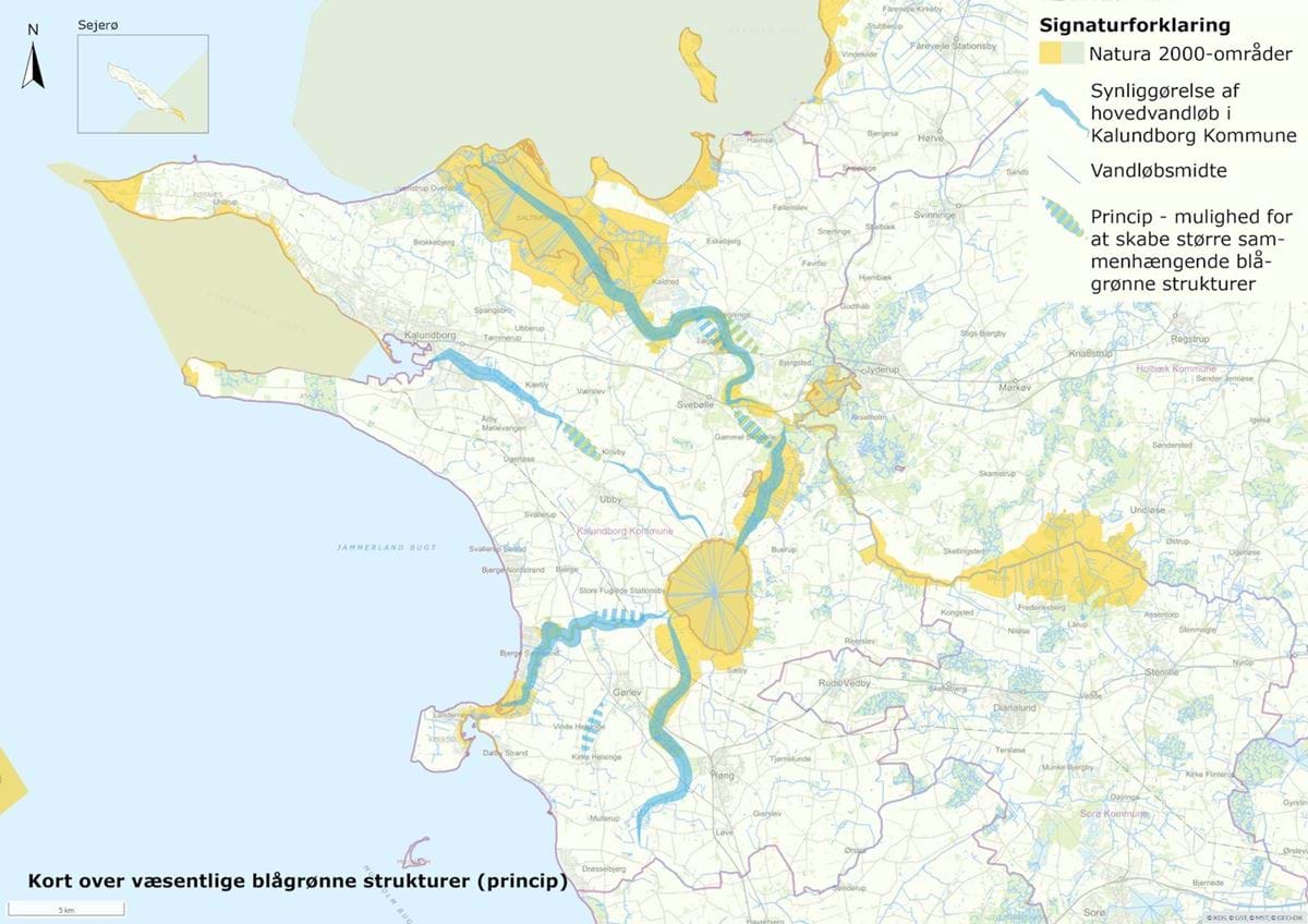 Kalundborg Kommune står over for en vigtig opgave: at balancere hensynet til natur, klima og byudvikling i en tid med øgede klimaudfordringer og et stigende arealpres. Natur og vand er ikke blot værdifulde ressourcer – de er forudsætninger for en bæredygtig og robust arealforvaltning. Derfor skal de tænkes sammen, på tværs af grænser og matrikelskel, som integrerede elementer i planlægningen. Med en helhedsorienteret tilgang kan der skabes blågrønne strukturer, der både styrker biodiversiteten, beskytter mod klimaudfordringer og skaber attraktive rammer for at bo og leve, uddanne sig samt arbejde og drive virksomhed i kommunen.